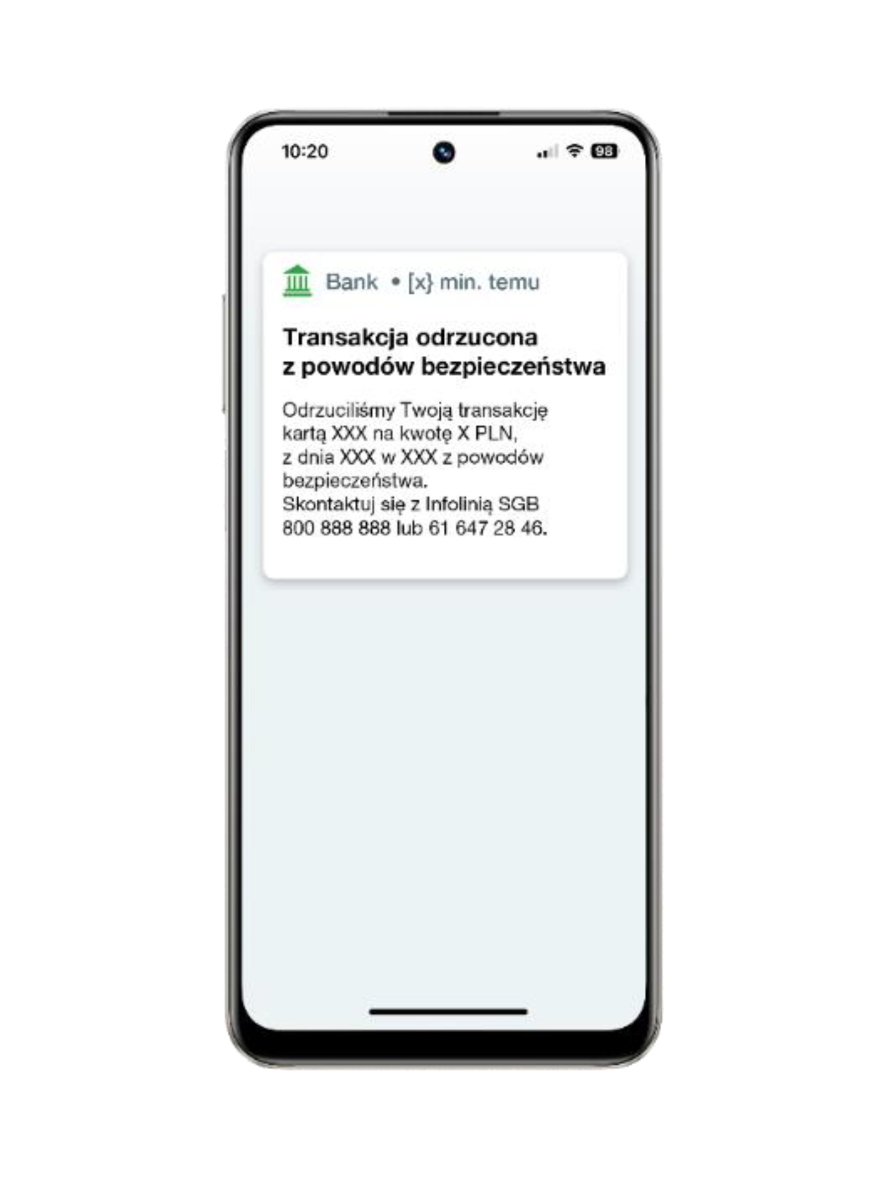 2. W treści wiadomości poprosimy Cię o kontakt z Infolinią SGB i potwierdzenie próby płatności.